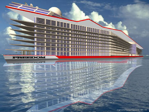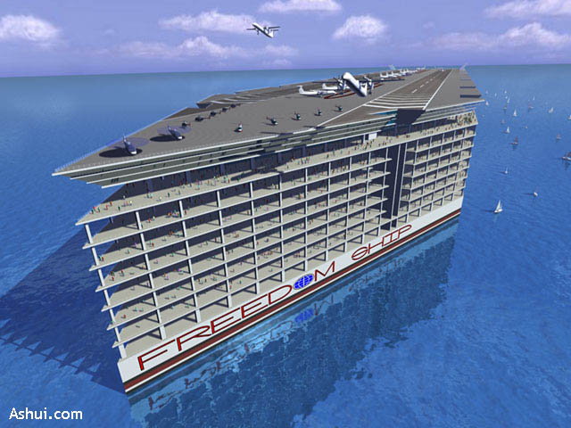 Đi du lịch vòng quanh thế giới mà không cần rời khỏi phòng của mình, đó là dự án của nhà kinh doanh Mỹ Norman Nixon. Để làm điều mình nghĩ, Norman Nixon đã thiết kế một thành phố nổi có tên là Freedom – một thành phố nổi dưới dạng du thuyền khổng lồ trên đại dương bao la.