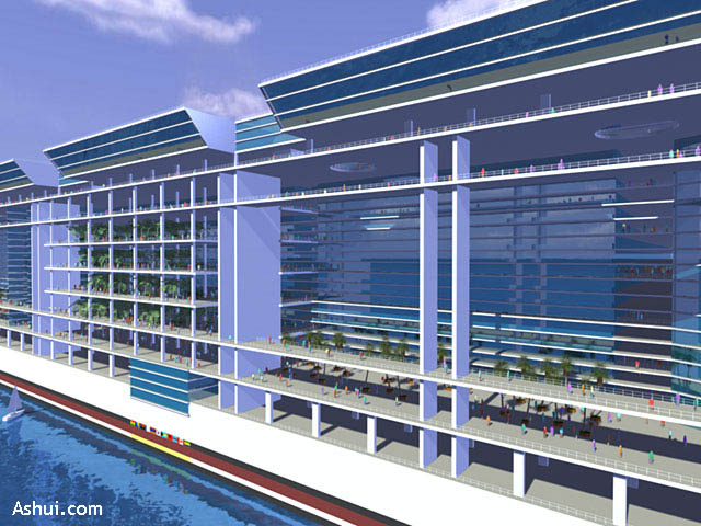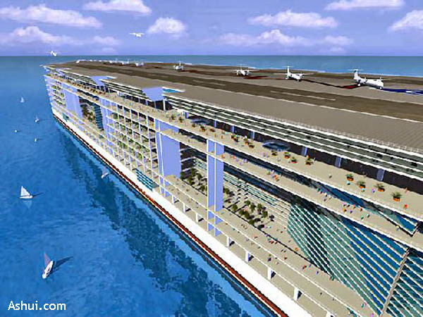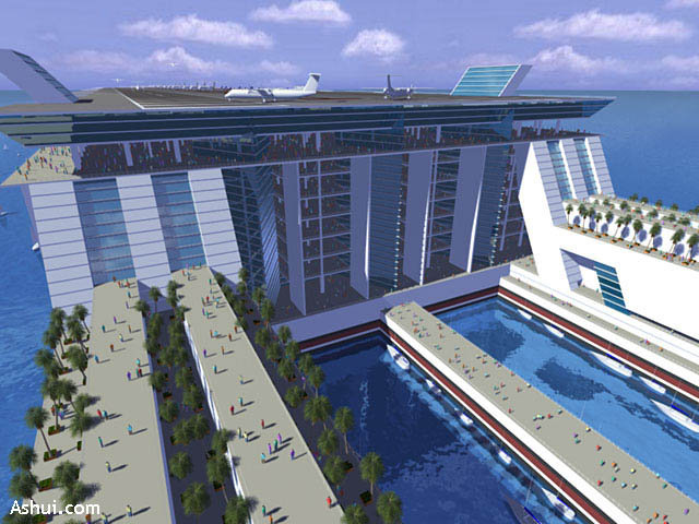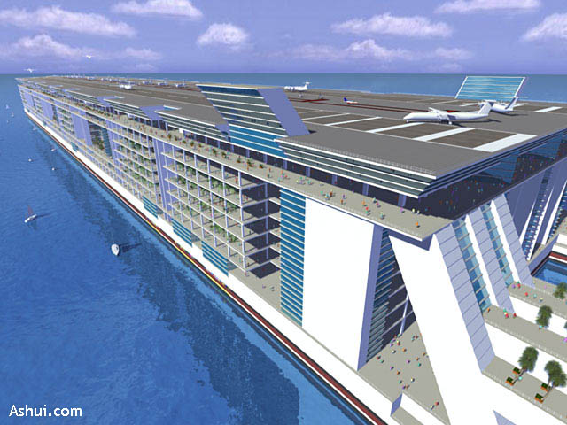 Trên thực tế, trên thế giới đã có 2 thành phố nổi tương đối đúng nghĩa đang qua lại liên tục giữa các đại dương. Đó là con tàu “The World” của Công ty ResidenSea của Mỹ. “The World” là một con tàu dài 196m với 12 boong, 110 căn hộ sang trọng (một phần trong số đó đã được bán, số còn lại đang chờ đợi những chủ nhân mới).