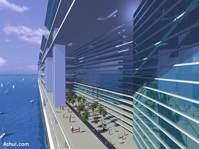 Con tàu khổng lồ dài 262m, trị giá ước tính 650 triệu USD này xét về mọi tiêu chí có thể coi là một thành phố nổi thực sự với những căn hộ sang trọng, cùng với hầu như tất cả mọi phương tiện giải trí và nhu cầu cần thiết để cư dân trên đó có thể sống cả đời mà không cần bước chân lên đất liền.