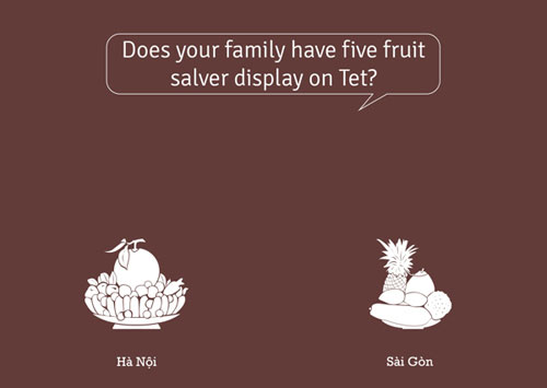 Mâm ngũ quả bày lên bàn thờ trong những ngày Tết Nguyên đán của người Hà Nội và người Sài Gòn cũng rất khác nhau