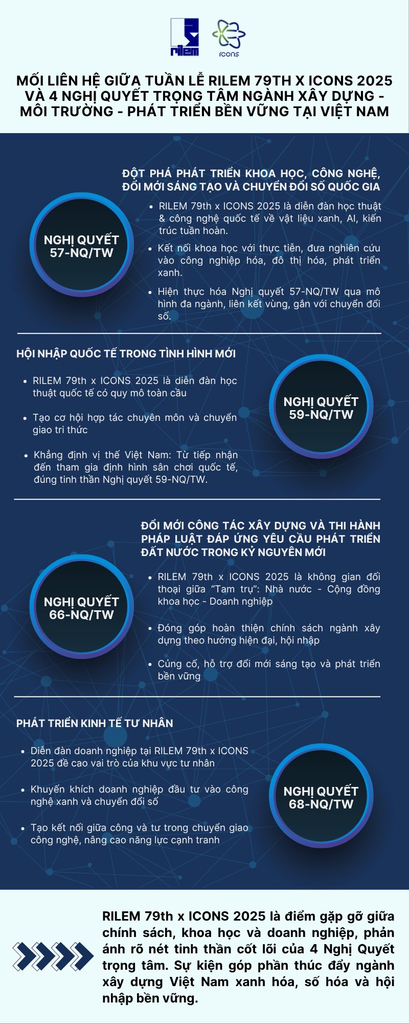 Tuần lễ thường niên RILEM 79th & ICONS 2025 vì vậy không đơn thuần một sự kiện học thuật quốc tế, mà còn là khởi đầu quan trọng để Việt Nam khẳng định vị thế trong lĩnh vực khoa học – công nghệ xây dựng, đóng góp vào tiến trình phát triển xanh và bền vững của khu vực và thế giới.