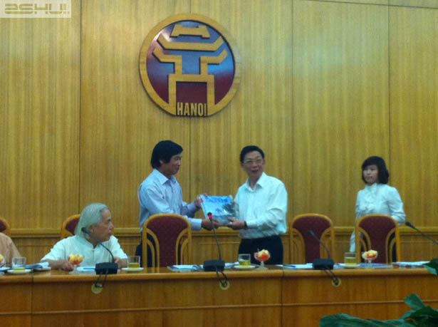 Chủ tịch Hội Quy hoạch Phát triển Đô thị VN tặng Chủ tịch UBNDTP Hà Nội trọn bộ Tạp chí Quy hoạch Đô thị