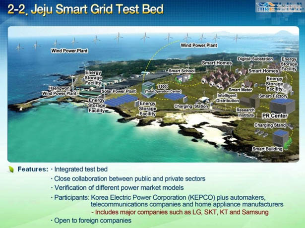 Tính đến tháng 7/2011, đã có hơn 2.000 ngôi nhà tại vùng Tây Bắc đảo Jeju được trang bị hệ thống lưới điện thông minh, một trong những dự án công nghệ mới nhất và đầy tham vọng của Hàn Quốc. Dự án thử nghiệm trị giá 220 triệu USD này được triển khai nhằm giảm chi phí sử dụng điện và mức độ tiêu thụ năng lượng của địa phương thông qua việc sử dụng những thiết bị công nghệ thông minh hơn, giúp tăng năng suất và tạo ra nhiều nguồn năng lượng tái tạo hơn nữa.