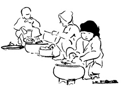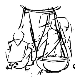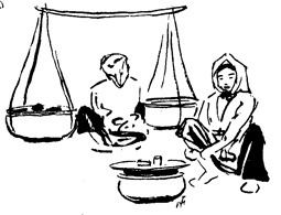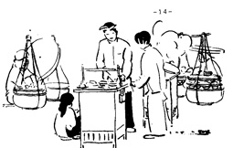 Hình vẽ bên : Bà hàng quà và khách – tác giả: Mai Thứ