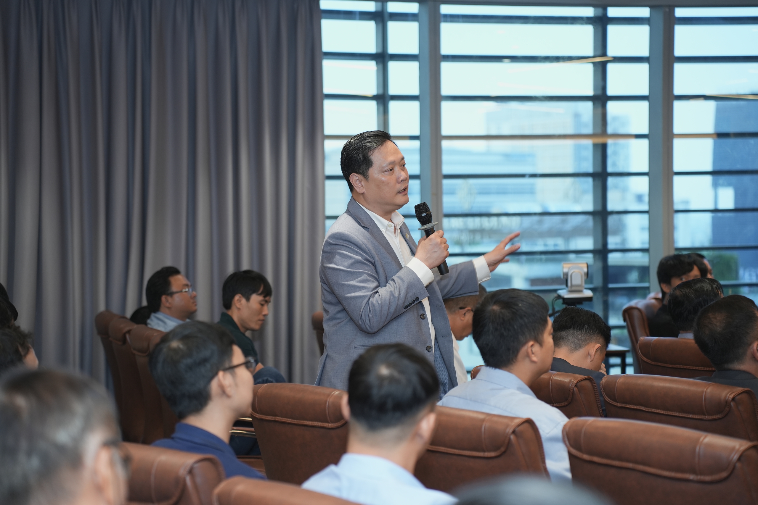 Kỹ sư Nguyễn Ngọc Lân trình bày chuyên đề về bê tông tiền chế cho kết cấu nhà công nghiệp, tập trung làm rõ đây là xu hướng tất yếu trong bối cảnh phát triển mạnh các khu công nghiệp, logistics và kho vận, cùng với yêu cầu ngày càng cao về tiến độ, tải trọng và hiệu quả vận hành công trình.
