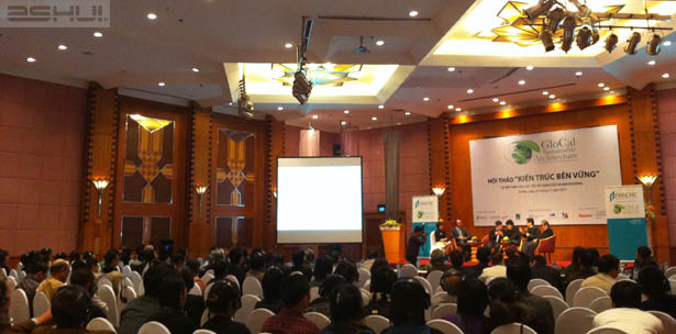 Hội thảo quốc tế “Kiến trúc bền vững – Sự kết hợp các yếu tố toàn cầu và địa phương” (GloCal Sustainable Architecture) có trọng tâm về kiến trúc bền vững và vai trò của kiến trúc bền vững trong việc giải quyết một số vấn đề trong phương thức xây dựng hiện đại. Hội thảo với sự điều khiển của PGS.TS.KTS Phạm Thúy Loan (UAI – Đại học Xây dựng) là một dịp để chúng ta nhìn nhận những vấn đề đặt ra ở trên, đồng thời với sự tham gia trình bày các nghiên cứu và các công trình thực tế của các kiến trúc sư nổi tiếng Osamu Ishiyama, Testuo Furuichi và Hiroshi Sambuichi, hy vọng chúng ta có thể tìm ra một số giải pháp nhất định.