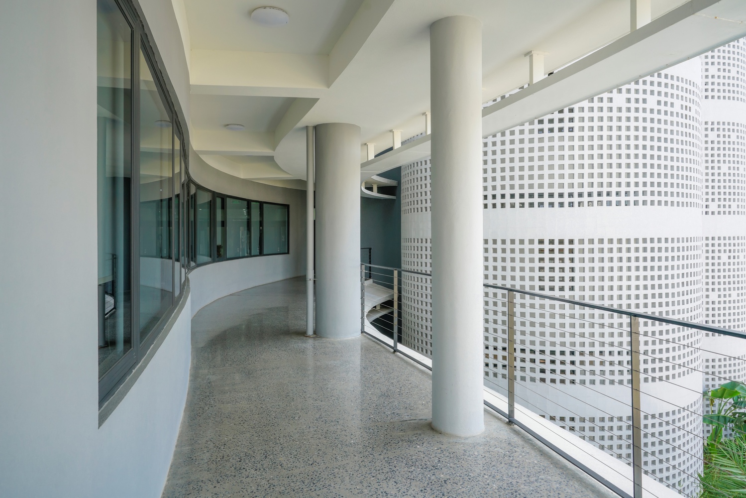 Dự án khám phá không gian trung gian trong bối cảnh khí hậu nóng bức bên ngoài, nơi các kiến trúc sư tìm cách tạo ra môi trường làm việc bên trong mát mẻ, trái ngược với nhiều thiết kế châu Âu hướng đến bối cảnh ngược lại. Hành lang vòng ngoài là lối vào phụ và được thiết kế để tạo ra một không gian cộng đồng có điều hòa.