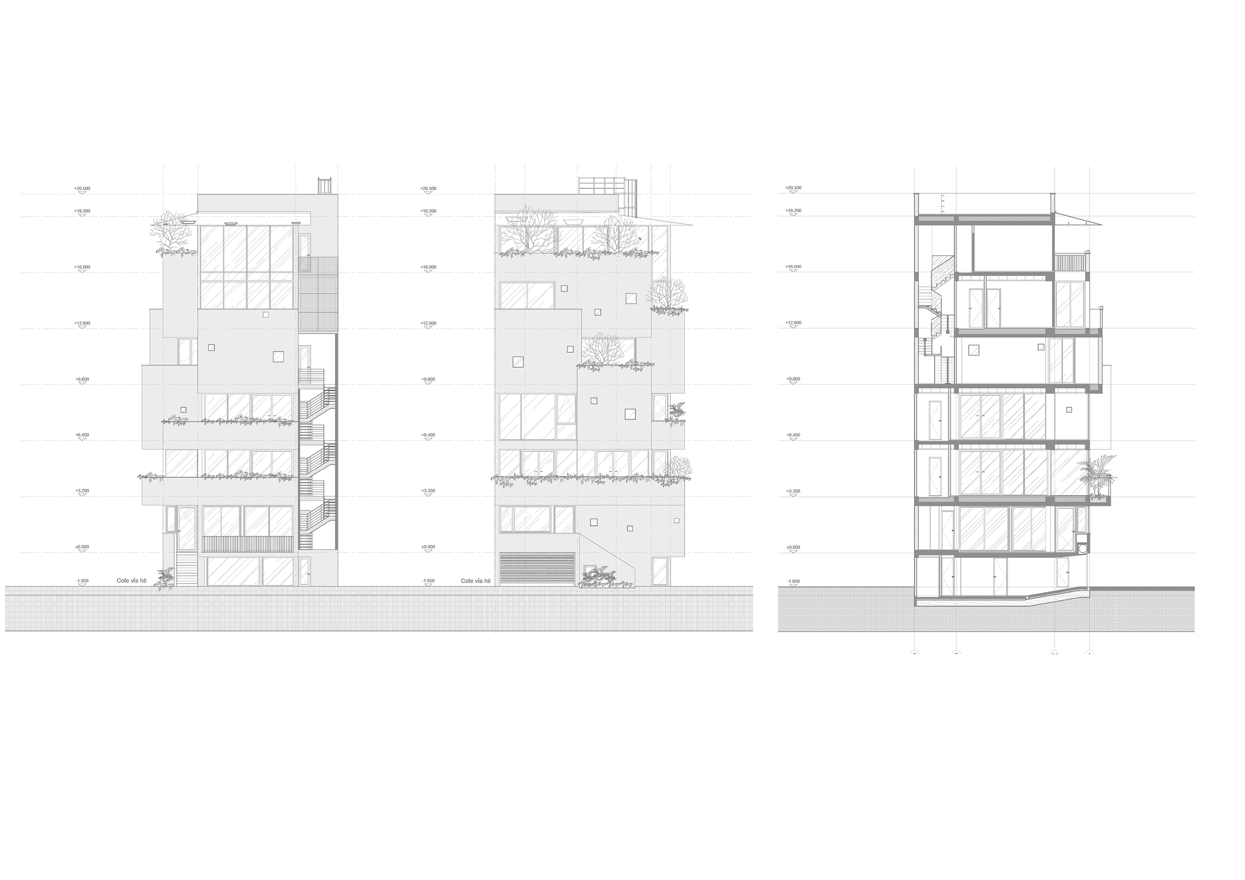 Những khoảng trống này không được xem là phần diện tích bị bỏ phí, mà là một phần cấu thành quan trọng của công trình. Ánh sáng, gió và cây xanh được đưa sâu vào bên trong, giúp cải thiện vi khí hậu và tạo điều kiện thích ứng tốt hơn với khí hậu nhiệt đới của Hà Nội.