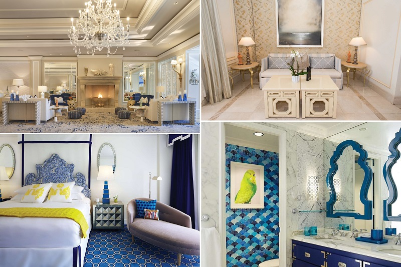 Đây là dự án cải tạo khách sạn với sự kết hợp hài hòa giữa đặc trưng cổ điển và tinh thần hiện đại, mang đến vẻ đẹp đẳng cấp và cuốn hút. Nếu như ghế bành nhung, bàn trà, đèn chùm pha lê hay những chân đèn đồng chạm trổ tinh xảo… gợi nhớ phong cách châu Âu thế kỷ 19 thì bộ ba màu sắc trắng – xanh lam – vàng nhiệt đới, kết hợp cùng họa tiết lấy cảm hứng từ đại dương, mang đến vẻ đẹp tươi mới, hiện đại.