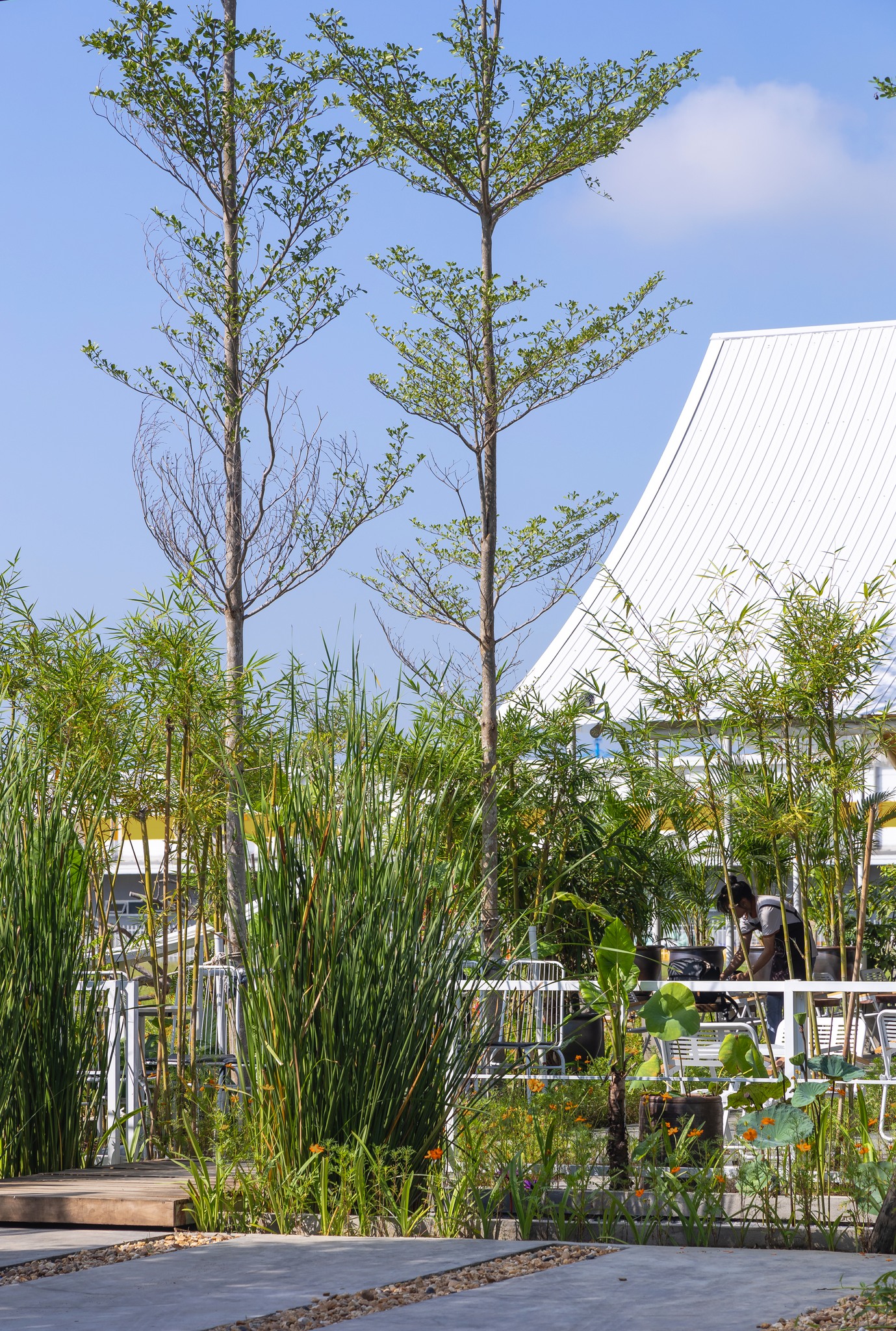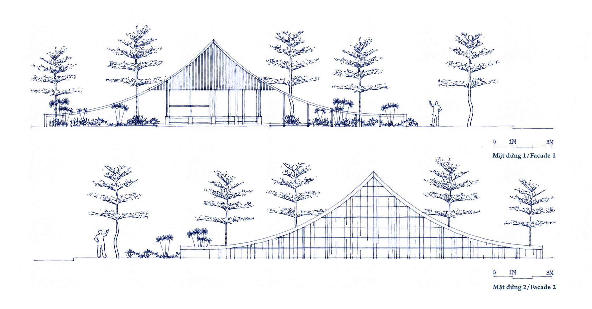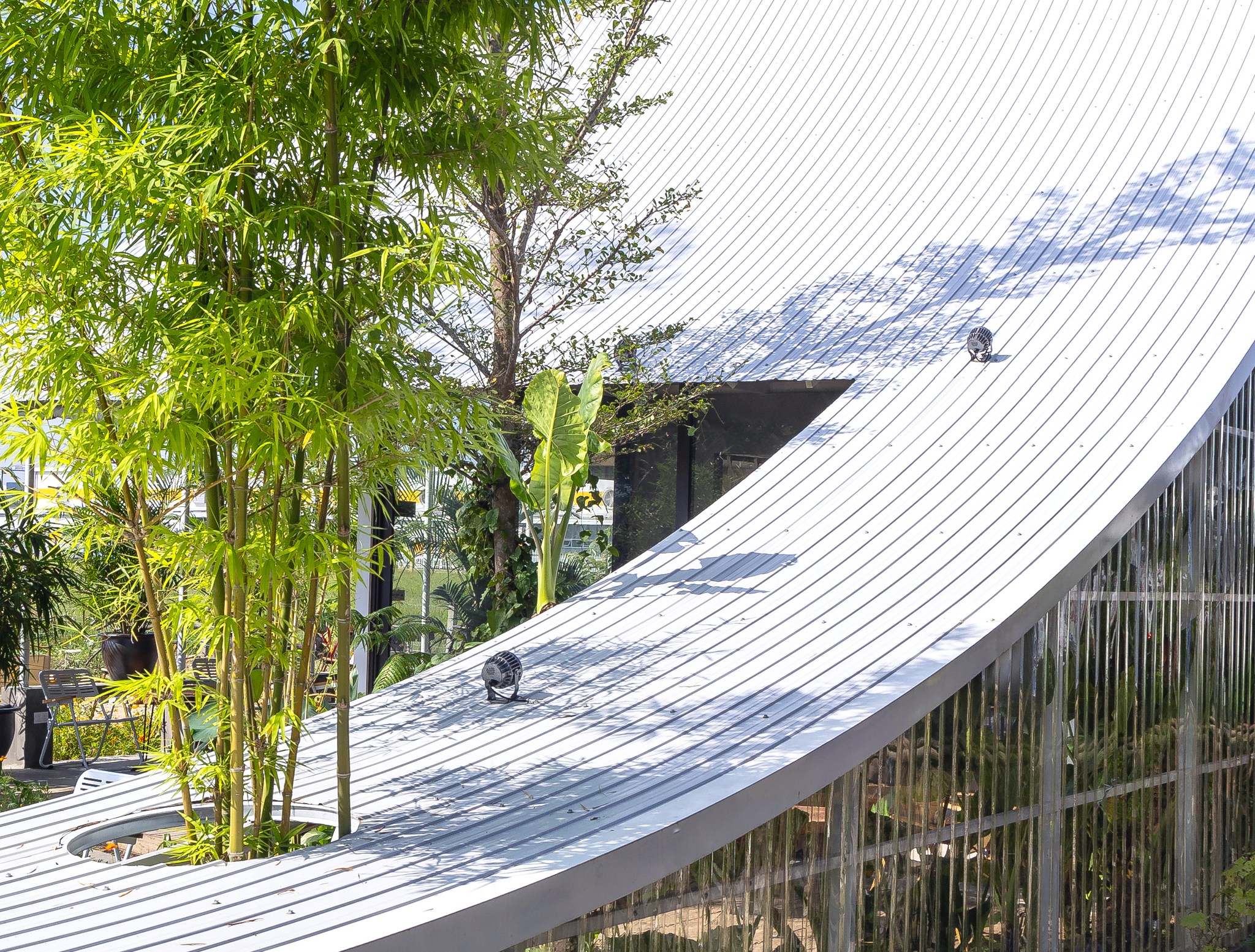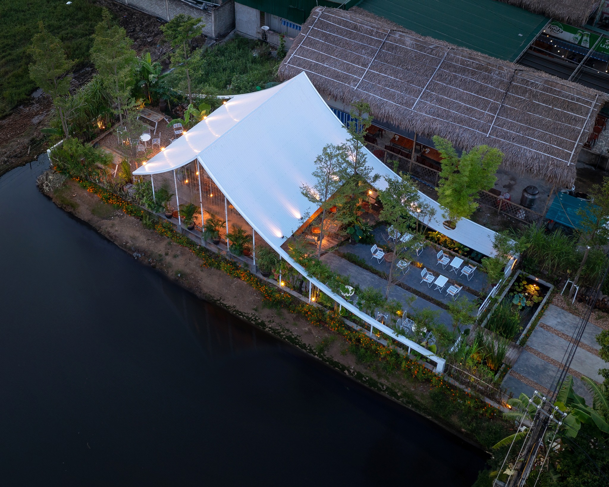 Ngoài cấu trúc mái chính lớn, không gian còn có thể mở rộng linh hoạt bằng các hệ mái bạt chống phục vụ linh hoạt nhu cầu sử dụng.