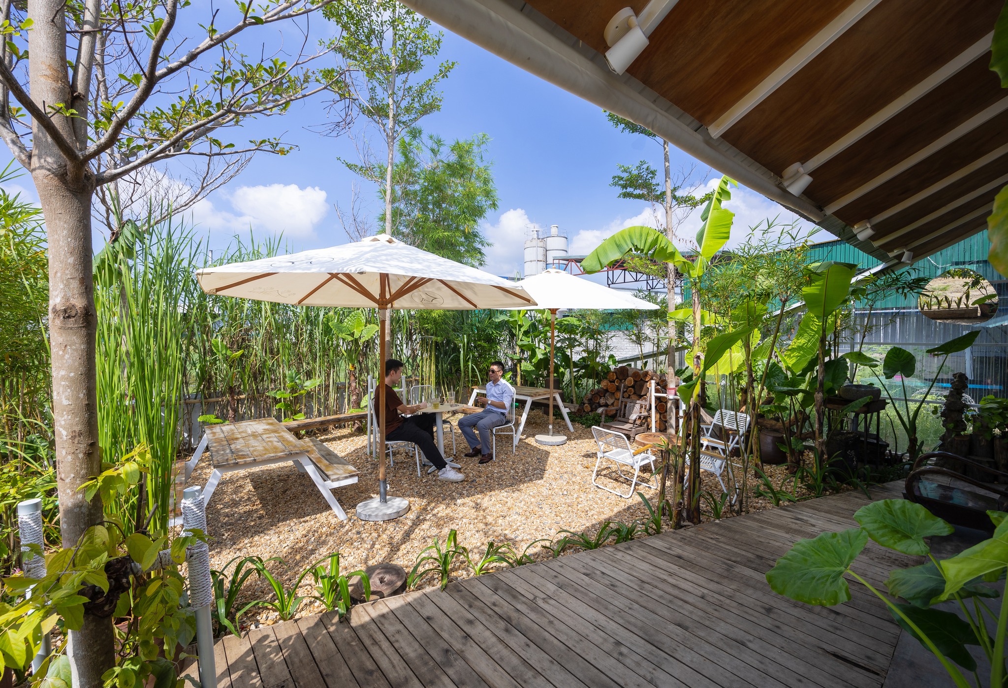 Không gian cà phê ngoài trời linh hoạt cũng được phát triển ra 2 khu vực sân trước và sân sau, mang lại không khí của một bữa tiệc cà phê dã ngoại ngoài thiên nhiên.