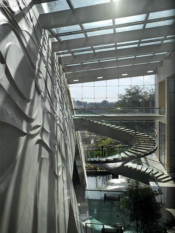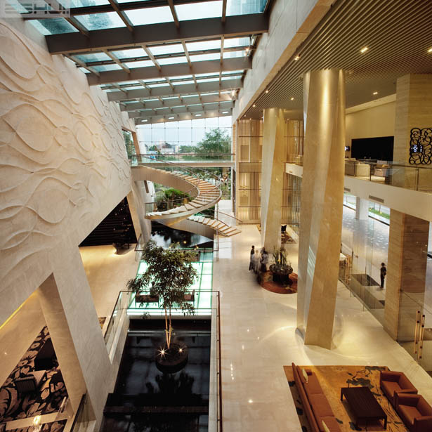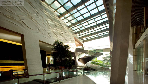 Một loạt những cây cầu và cầu thang cho phép sự dịch chuyển nhẹ nhàng của khách du lịch đến sảnh hội nghị, phòng ăn, trung tâm thương mại và spa. Ấn tượng nhất là cầu thang xoắn nhô ra không đối xứng nơi mà khách có thể đi dạo trước khi vàp sảnh hội nghị trong những đám cưới và sự kiện.