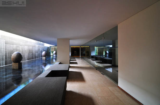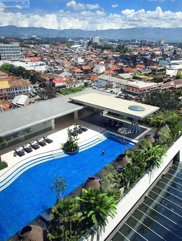 Địa hình của Bandung, với dãy núi lửa bao quanh, đã tạc địa hình đô thị trở thành một khu vực với các ngọn đồi và các thung lũng, và một khu vực lòng sông trung tâm nơi mà các không gian sử dụng chung của khách sạn được bố trí. Cả mặt phẳng cảnh quan được gập lại hình thành nên một bức tường đá lớn đối diện với sảnh chính, với những văn hoa chạm trổ có cảm hứng xuất phát từ văn hoa của kỹ thuật in hoa truyền thống của đảo Java. Khi bức tường lớn này kéo lên phía trên, nó bao lấy toàn bộ khu vực tiếp tân, phòng hội nghị, trung tâm thương mại và spa và tiếp tục kéo lên đến khu vực thư giãn nghỉ dưỡng phía trên mái. Cách thức lộ dần ra của các không gian kiến trúc, cảnh quan và nội thất đã mang lại một trải nghiệm tổng thể mang lại nhiều giác quan thể hiện tinh thần của khu vực Bandung.