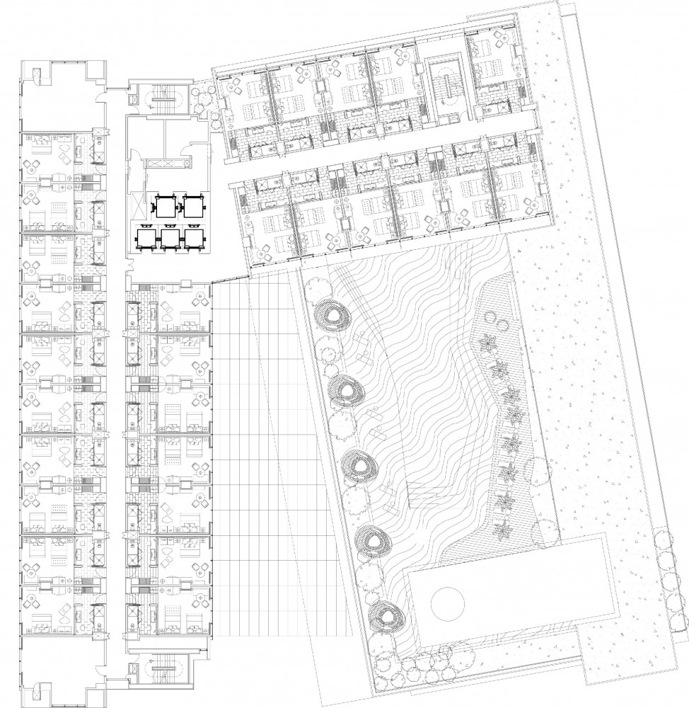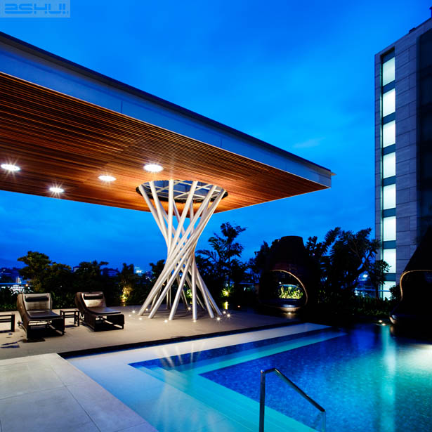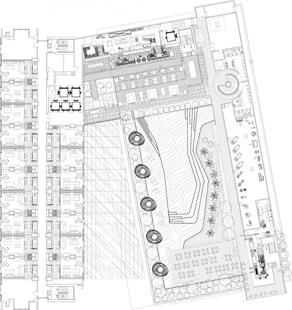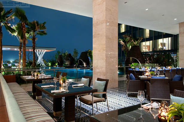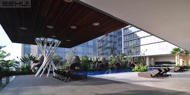Tại khu vực vườn cây xanh trên mái, sự cách điệu hiện đại của nền văn hóa bản địa đảo Java với những chòi nhỏ được bố trí dọc theo hồ nước có cây xanh tươi mát của khách sạn, mang đến các không gian thân thuộc và được che bóng mát cho các nhóm gia đình. Một nhà hàng ngoài trời có tầm nhìn hướng ra hồ bơi đã hoàn thiện hoàn toàn bầu không khí nghĩ dưỡng của khách sạn.