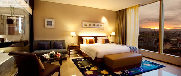Phần lớn các phòng khách sạn được thiết kế rộng rãi 40 m2 phù hợp với những yêu cầu du lịch của các gia đình Indonesia có nhiều thành viên và thường ở chung với nhau trong cùng một phòng. Các căn phòng này có lối vào từ một khu vực có các thang máy riêng tại tầng sảnh, từ đây tách biệt khỏi sự ồn ào của các không gian công cộng. Tất cả các phòng bao gồm cả phòng tắm tường kính mang lại các góc nhìn ngoạn mục của phong cảnh đồi núi bao quanh, đã làm tôn lên bầu không khí sang trọng nghỉ dưỡng của khách sạn. Giống như các khu vực công cộng, các phòng đều được hoàn thiện với trang thiết bị cao cấp và đa dạng chất liệu sử dụng có cảm hứng xuất phát từ vẻ đẹp của đảo Java. Các thanh gỗ ấm áp, các sợi vải uốn luợn Ikat và các tấm thảm theo phong cách dệt văn hoa đã tiếp tục hoàn thiện hơn cho truyền thống du lịch đẹp quyến rũ của khu vực Bandung, Indonesia.