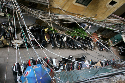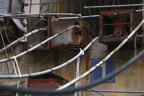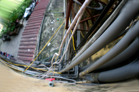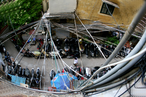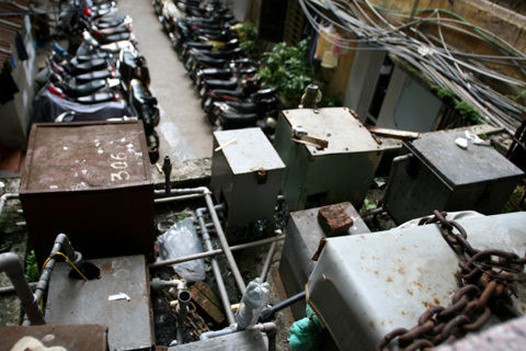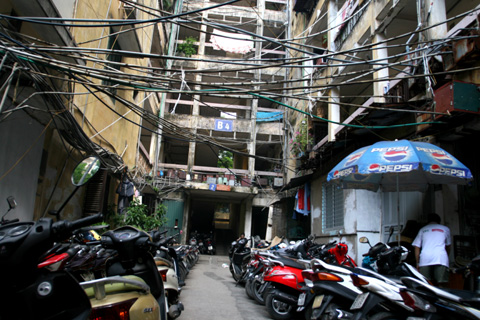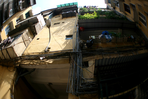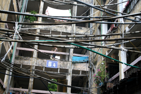 Những “con lươn” bám vào các bức tưởng của khu tập thể.