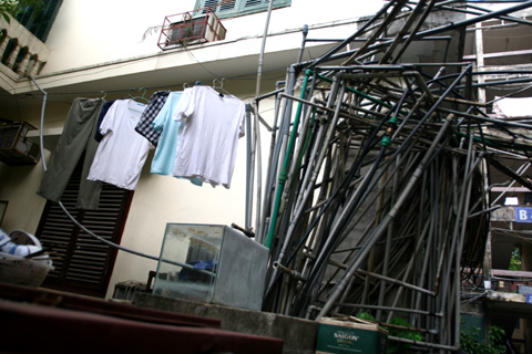 Đường ống dẫn nước mọc tua tủa khắp nơi.