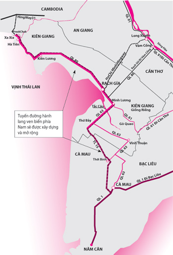 Cùng với các công trình đường cao tốc TP Hồ Chí Minh- Trung Lương và các cầu Cần Thơ, Rạch Miễu, các tuyến đường Nam sông Hậu, Quản Lộ – Phụng Hiệp, dự án đường hành lang ven biển phía Nam sẽ hình thành một hệ thống giao thông đường bộ rộng mở, thông suốt tạo điều kiện cho đồng bằng sông Cửu Long cất cánh.