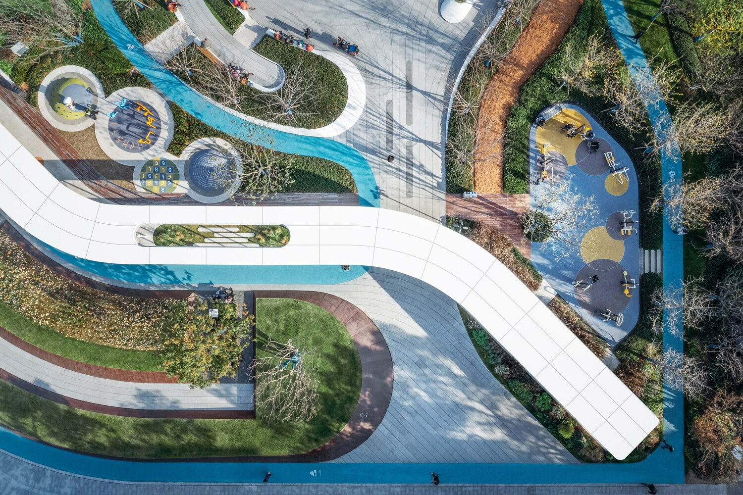 Thiết kế tổng thể của công viên một phần bắt nguồn từ sự hiện diện của núi non và dòng chảy trong những khu vườn truyền thống của Trung Quốc. Lấy cảm hứng từ đó, công trình hài hòa và cân bằng giữa các đường cong mềm mại cũng như những điểm cao thấp, tụ và tán.