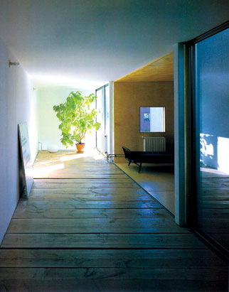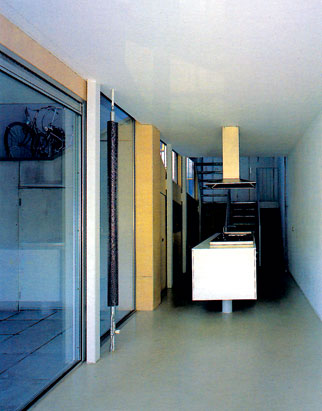 Như các nhà ống ở phố, hai bức tường bên có kích thước cố định. Giải pháp giữa các khối được sắp đặt trong khoảng không đó.