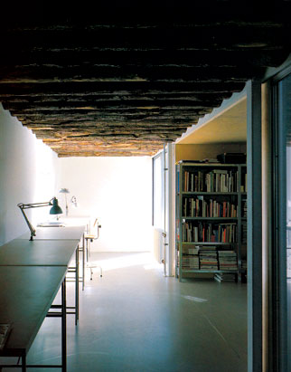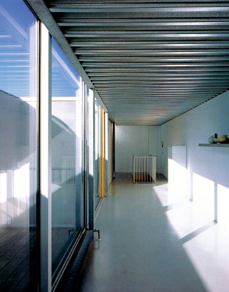 Còn nhà số 18 có chiều rộng 4,2m và cùng chiều sâu 16m. Hai khối chính được sử dụng vật liệu riêng biệt chứa nhà để xe và bếp ở tầng một, buồng ngủ cùng buồng tắm ở tầng ba. Hai khối này đan xen nhau tạo nên không gian phát triển theo chiều đứng của buồng ăn ở tầng một và buồng khách ở tầng hai. Sự linh hoạt ở đây là các công năng được tạo ra bởi các không gian trong các khối, giữa các khối, cũng như bên trên và bên dưới các khối. Khác với nhà số 12, khoảng sân ở đây chỉ được lấy ở một phía, tức là mặt tiền phía kênh đào được xây lùi vào bên trong. Cũng nhờ vậy mà ánh sáng có thể chuyền vào sâu trong nhà và chính không gian này đã tạo nhịp cầu nối giữa trong và ngoài. Do đó, ngôi nhà mang tính hướng ngoại nhiều hơn.