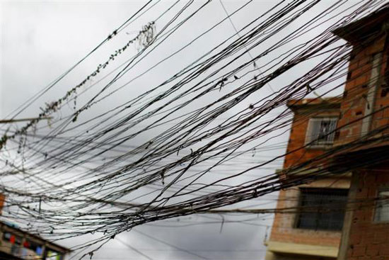 Mạng cáp điện tạm thời ở khu ổ chuột Las Maya.