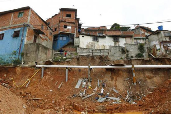 Một khu vực lở đất làm mất con đường đi vào khu ổ chuột Las Maya.
