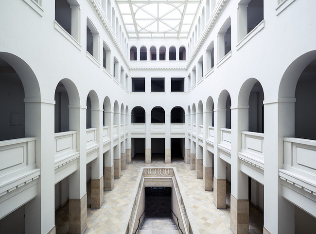 Đại học Khoa học ứng dụng HTW Berlin sử dụng tông màu trắng cổ điển kết hợp với trần kính tận dụng tối đa ánh sáng thiên nhiên.