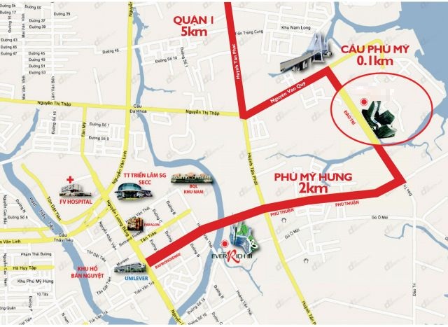 Dự án nằm tại số 442 Đào Trí với mặt tiền sông dài 1 km.
