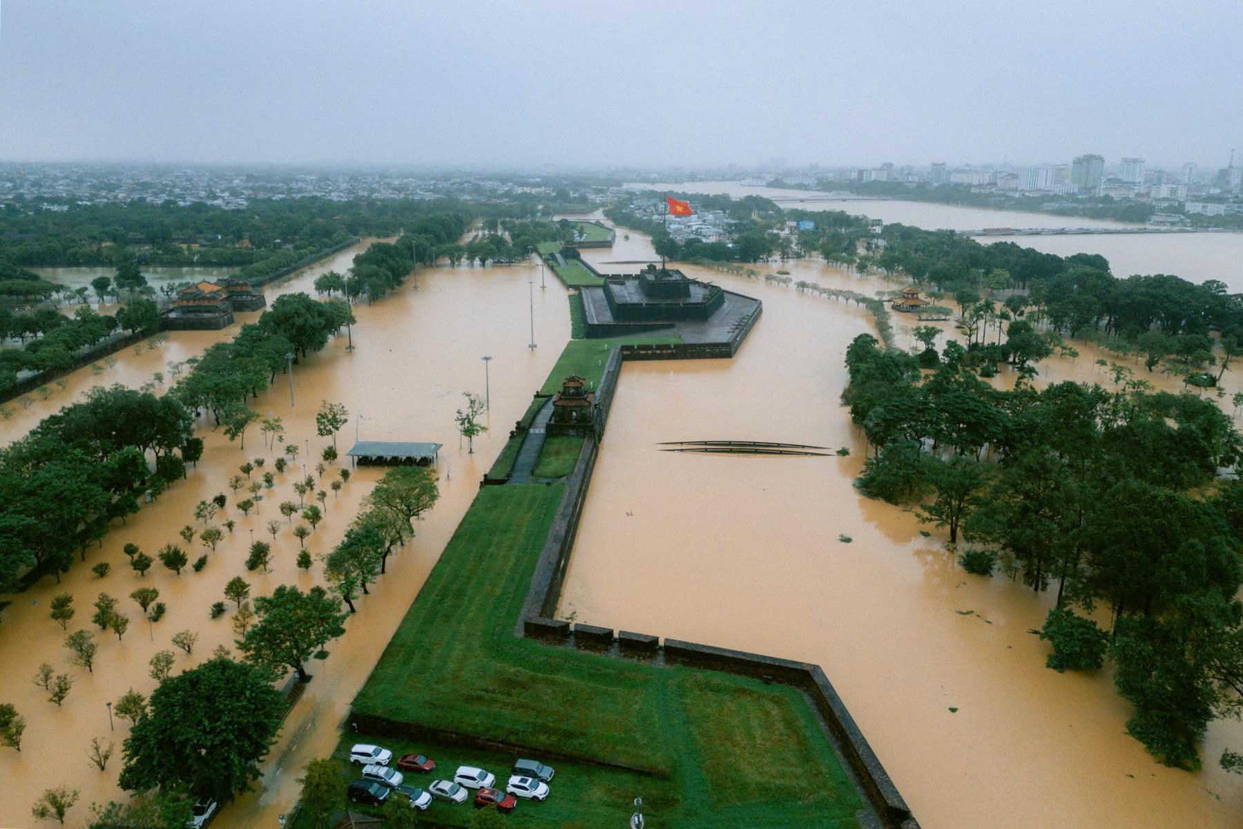 Sáng 28/10, mực nước lũ trên các sông ở Huế tiếp tục duy trì ở mức cao, gây ngập sâu nhiều khu dân cư, tuyến đường và đặc biệt là khu vực Kinh thành Huế.