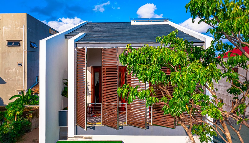 Đối với mái bằng, nhiều nhà chỉ xem như “một tấm đúc” để trống mà không bố trí chức năng sử dụng đi kèm biện pháp cách nhiệt. Cách làm này vừa lãng phí không gian vừa bất lợi về kỹ thuật, Nếu làm sân phơi thì nên có mái nhẹ để tránh quần áo tiếp xúc trực tiếp với nắng mưa, làm sân cây cảnh thì có khung, giàn leo kết hợp giảm nóng cho tầng dưới. Nếu có dự định sau này cơi nới cải tạo để thêm phòng thì càng cần dự trù cấu trúc không gian cho phù hợp (như cột, giằng tường, kết cấu chờ sẵn) và có thể lợp một mái dốc che chắn bên trên hoặc mái đặt tấm năng lượng mặt trời kiểu “mái chồng mái” giúp giảm nóng, giảm thấm dột hiệu quả thay vì chỉ làm mái bằng “phơi mình” ra nắng mưa.