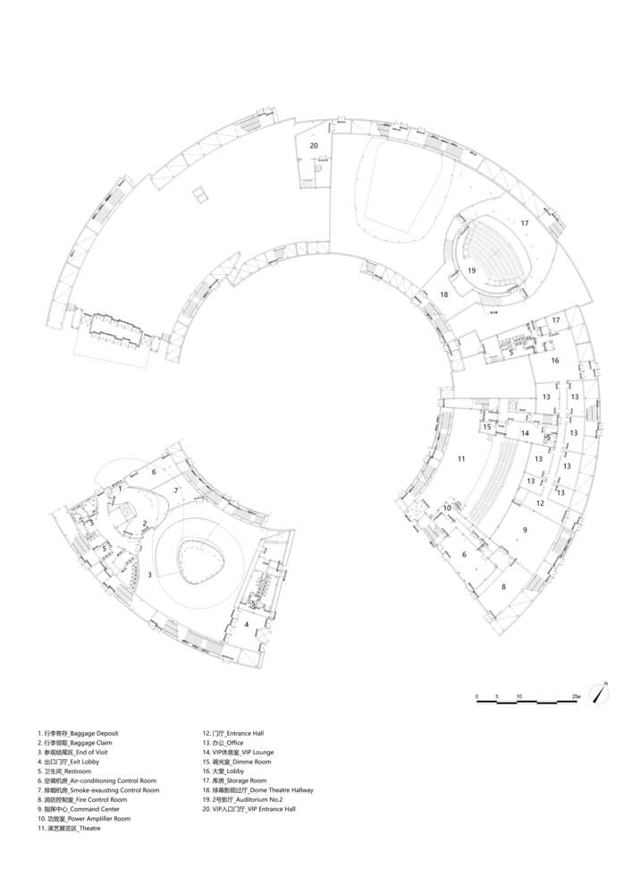Về mặt kết cấu, sáu lõi hình thang đóng vai trò như những trụ chịu lực chính, có khả năng chống chọi với động đất, một yếu tố tác động bởi tự nhiên cần lưu tâm tại địa hình đồi núi phức tạp. Cách tổ chức kết cấu này cho phép mở rộng không gian bên trong mà không cần đến hệ thống cột dày đặc. Từ đó tăng tính linh hoạt cho các hoạt động triển lãm văn hóa và sự kiện.