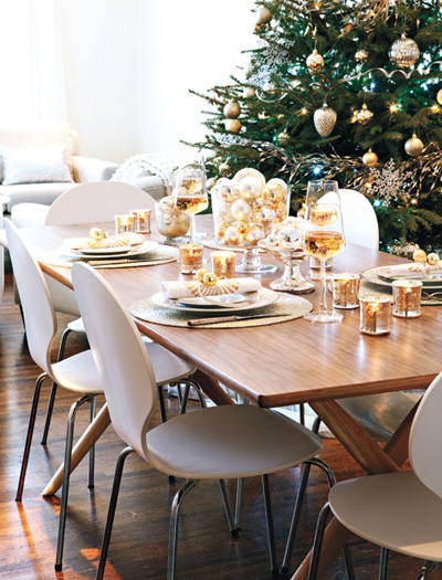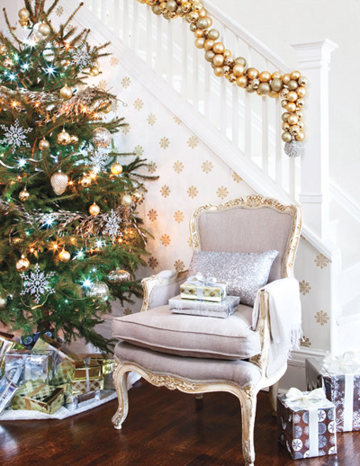 Phương án phối hợp giữa màu bạc và vàng kim tạo sự sang trọng lấp lánh và không kém phần lãng mạn cho ngôi nhà của bạn trong mùa Giáng sinh.