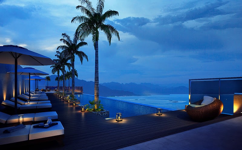 Bể bơi và các tiện ích cao cấp được đặt trên tầng cao nhất của tòa nhà