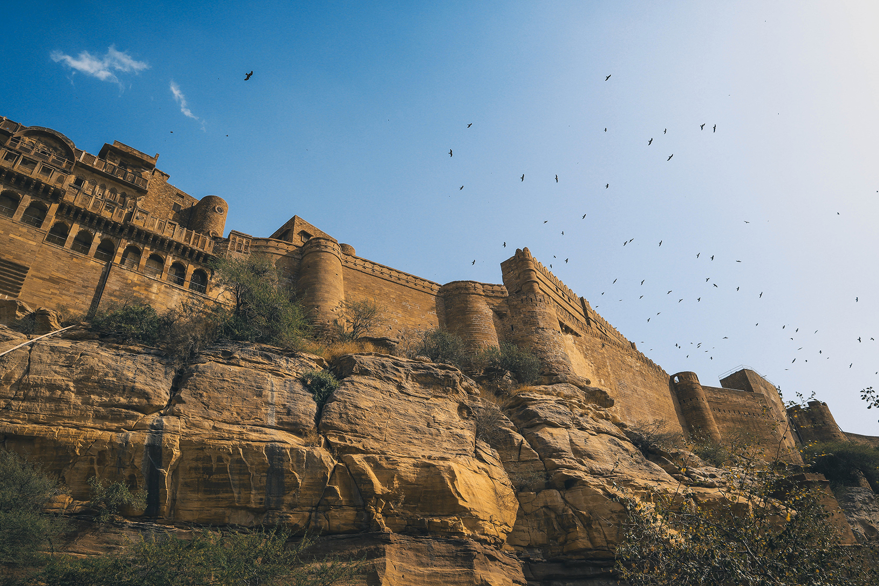 Tới Jodhpur, du khách không nên bỏ qua thành cổ Mehrangarh để hiểu hơn về lịch sử thành phố này. Mehrangarh là một trong những thành trì lớn nhất Ấn Độ, được xây từ năm 1459 trên ngọn đồi cao hơn 100m. Bên trong thành là bảo tàng lưu giữ hiện vật tốt nhất bang Rajasthan.