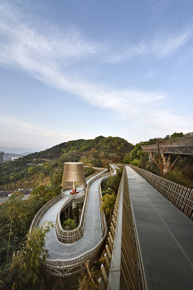 Thiết kế bao gồm một hế thống đường đi bộ thông minh nhằm tích hợp với địa hình đồi núi và rừng rậm trùng điệp của khu vực. Ý tưởng thiết kế mặt bằng với 10 lối tiếp cận mang tính biểu tượng tạo sự bổ trợ cho cột sống xuyên đô thị. Phần quan trọng của dự án là 2 cầu đi nằm trong tổng thể hệ thống đường đi bộ. Hơn thế nữa, công trình kiến trúc này tạo ra để nắm bắt nền văn hóa độc đáo của Phúc Châu.