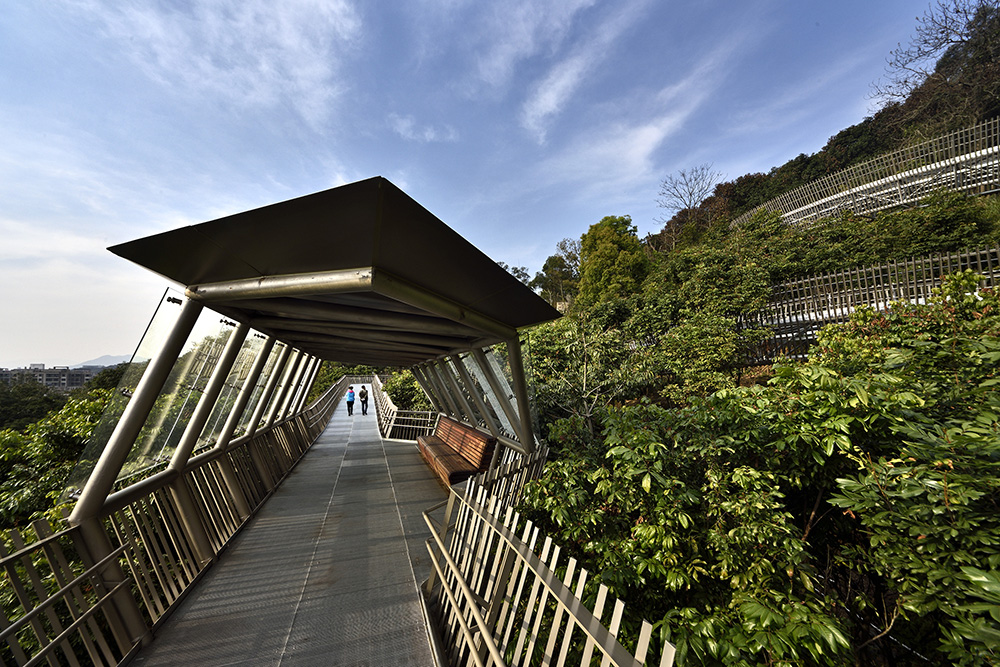 Giai đoạn đầu tiện của hệ thống lối đi bộ được hoàn thành vào tháng 5 năm 2015. Nằm tại lối vào một trung tâm thể dục thể thao, dự án bao gồm một cấu trúc ramp dốc hình xoắn ốc tạo thành biểu tượng quan trọng của hệ thống lối đi bộ. Dọc theo lối đi còn có những mái che mưa và cầu thang bộ kết nối với sân vườn được phủ kín bởi các loại thực vật địa phương và tiện ích giải trí.