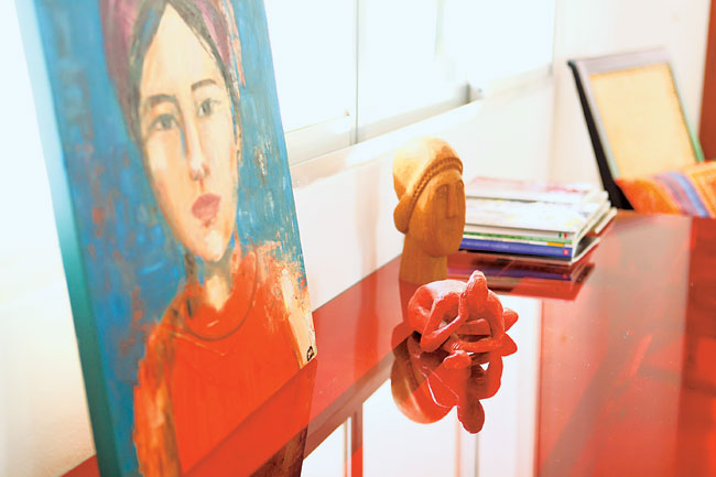 Bức tranh lớn ở sảnh vào là của Phương Quốc Trí, do chồng cô tặng nhân 40 năm. Bức tượng màu xám từ Thượng Hải cũng được chồng cô mang về nhân sinh nhật 40 năm. Bộ sưu tập bướm và bọ cánh cứng châu Phi là của cha cô, một nhà côn trùng học. Cô có những bức tranh màu xanh và cam nho nhỏ khi theo các lớp học của hoạ sĩ Helene Kling.