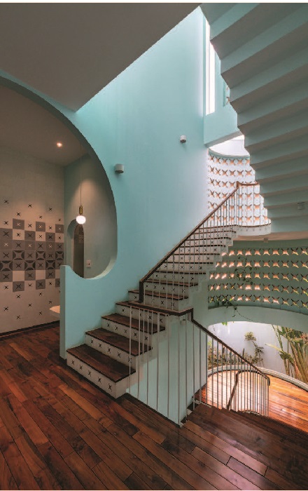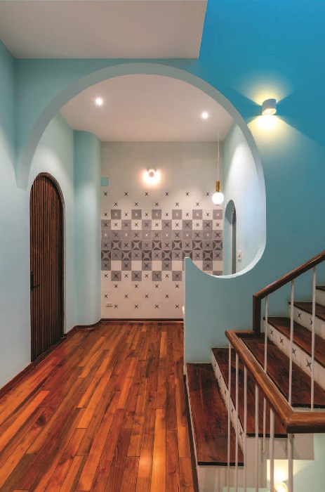 Vật liệu sử dụng cũng được chủ nhà đầu tư xứng đáng để đem lại một không gian mộc mạc, gần gũi nhất có thể với gạch bông thủ công và đá mài sử dụng trong nội, ngoại thất .