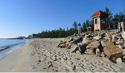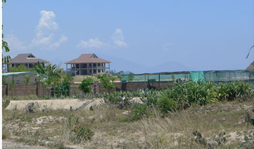 Đập vào mắt là những dự án hoang phế chắc đã vài năm rồi, tường trống hoác, mái gió thổi bay vài mảng ngói, có ngôi nhà còn chưa lợp mái…tiến thoái lưỡng nan. Bãi biển mấy năm nay lở dữ, có nơi nước đã lấn vào cả chục mét.