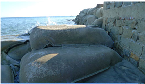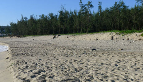 Nhiều dự án BĐS khai thác bãi cát ven biển hụt hơi, bỏ dở… cây cối chặt hạ trơ cát. Bãi biển phải kè đá, bao tải cát nhưng bãi cát phẳng đã thành bậc thang và sạt lở nhanh.