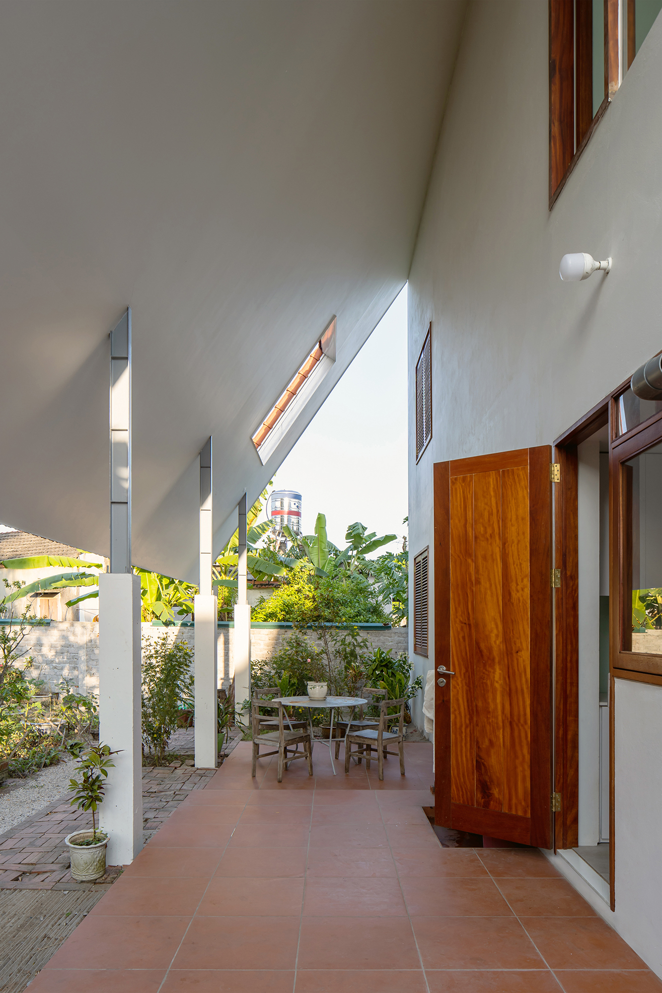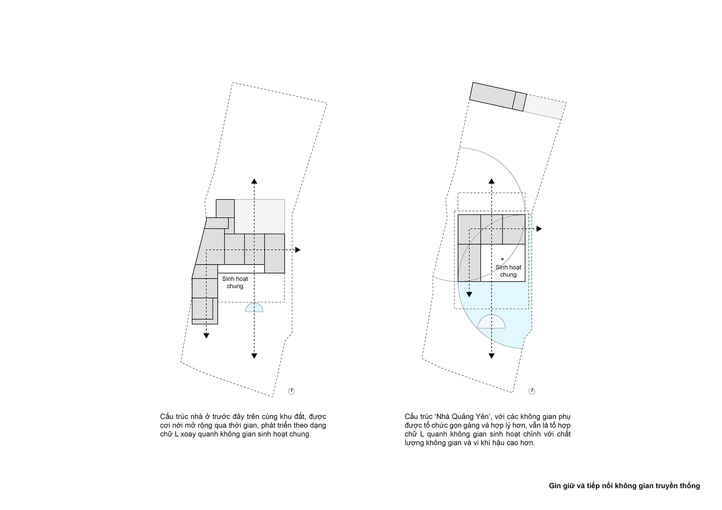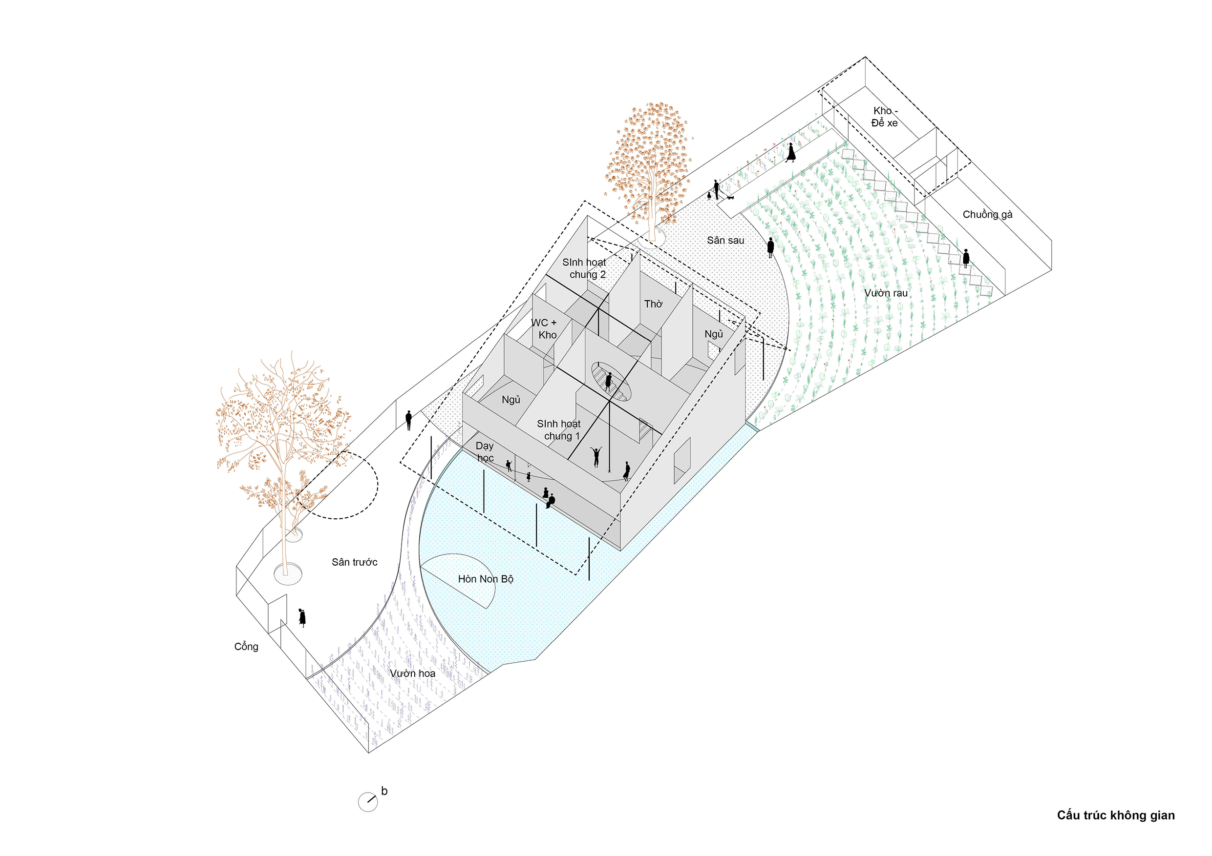 Ngôi nhà bắt đầu từ khu vườn cũ, là sự tiếp nối nếp sống của gia chủ qua nhiều thế hệ. Chủ nhà là vợ chồng cô giáo – bác sĩ đã nghỉ hưu, sống cùng em gái và các con.