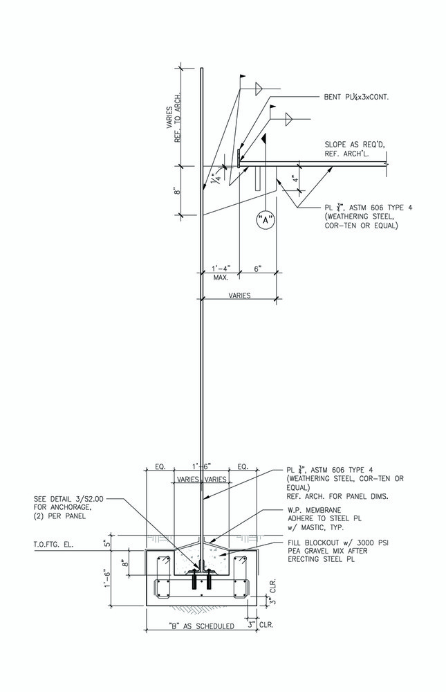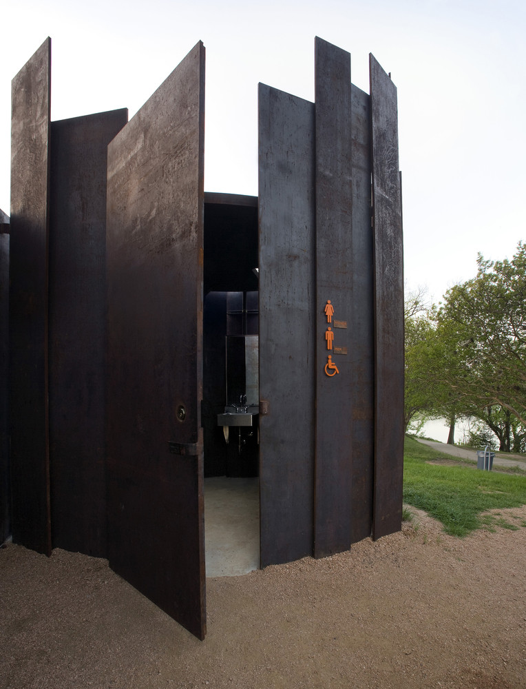 Nhà vệ sinh này được thiết kế như một tác phẩm điêu khắc ở trong công viên, một vật thể động dọc theo những con đường mòn. Cấu trúc của nó bao gồm 49 tấm thép Corten dầy thẳng đứng có sự thay đổi đáng kể về kích thước. Các tấm thép được bố trí theo trục cuộn ở một đầu để tạo thành các bức tường của nhà vệ sinh. Các tấm này được xếp so le nhau trên mặt bằng để kiểm soát tầm nhìn và cho phép ánh sáng, không khí trong lành xâm nhập.