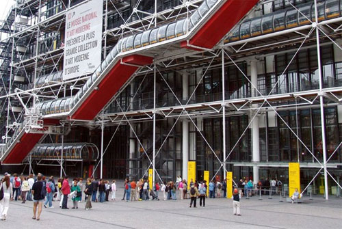 Bảo tàng Centre Georges Pompidou ở Paris, Pháp, có toàn bộ các phần thang máy, cầu thang bộ và đường ống được lắp đặt ở mặt ngoài của tòa nhà. Nhờ vậy, các bức tường bên trong có thể được sắp xếp lại để điều chỉnh thiết kế mặt sàn mỗi khi có sự thay đổi về trưng bày hiện vật.
