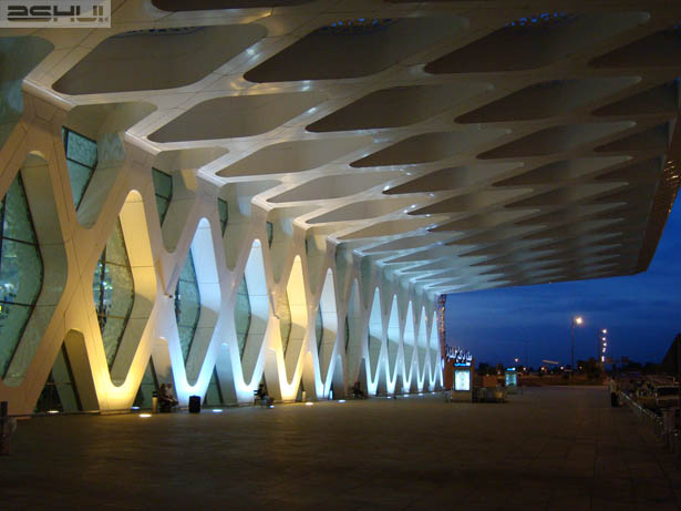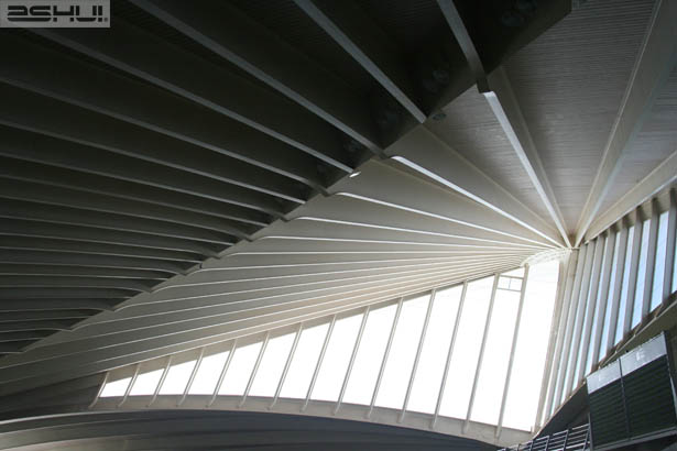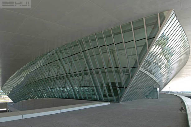 Sân bay được mở rộng để thu toàn cảnh bên ngoài và nó chỉ có một tán mái che mát duy nhất. Các cửa sổ có hướng đón ánh nắng mặt trời giúp định hướng và đón lấy các nguồn ánh sáng thay đổi trong ngày. Màu sắc trong sân bay thay đổi từ đỏ sang vàng khi hành khách bước vào tòa nhà.