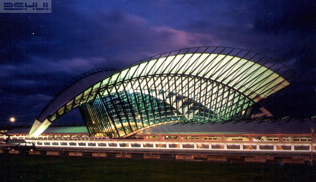 Trước đây, sân bay Lyon-Saint Exupéry còn được biết đến với cái tên sân bay Lyon Satolas, được xây dựng theo hình hai mái vòm thép giống như một con chim đang soải cánh bay. Kiến trúc sư Santiago Calatrava đã thiết kế phòng chờ chính St Exupéry của sân bay giống như một cánh chim dang rộng bao phủ lên trần nhà và có thể ánh sáng tự nhiên xuyên qua các khe hở. Mái vòm bên trên nhà ga tàu được xem như điểm nhấn kiến trúc đáng chú ý nhất của sân bay này.