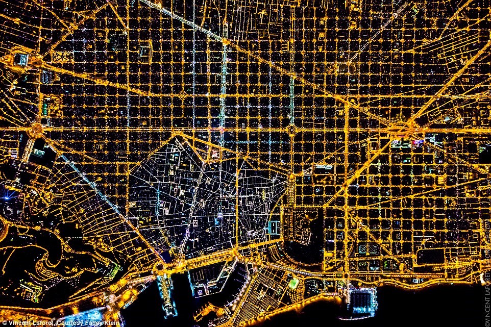 Barcelona, Tây Ban Nha được thiết kế thành những lô đất gọn gàng, giống như vi mạch máy tính khi nhìn từ trên cao.