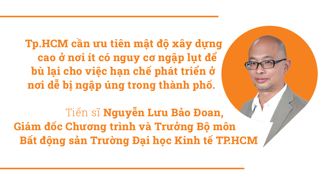 Đó là trong ngắn hạn, còn về dài hạn, Tiến sĩ Nguyễn Lưu Bảo Đoan gợi ý chú trọng phát triển đô thị ở nơi ít có nguy cơ ngập lụt khi nhìn vào bài học di dời thủ đô của Indonesia. Cần ưu tiên mật độ xây dựng cao ở nơi ít có nguy cơ để bù lại cho việc hạn chế phát triển ở nơi dễ bị ngập úng trong thành phố.