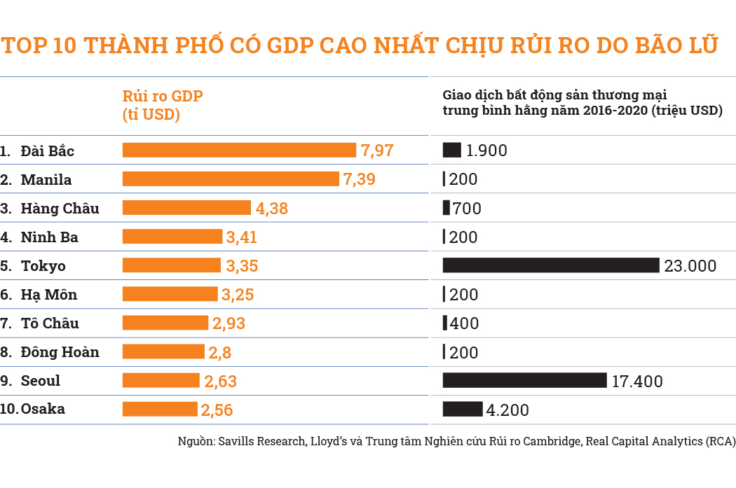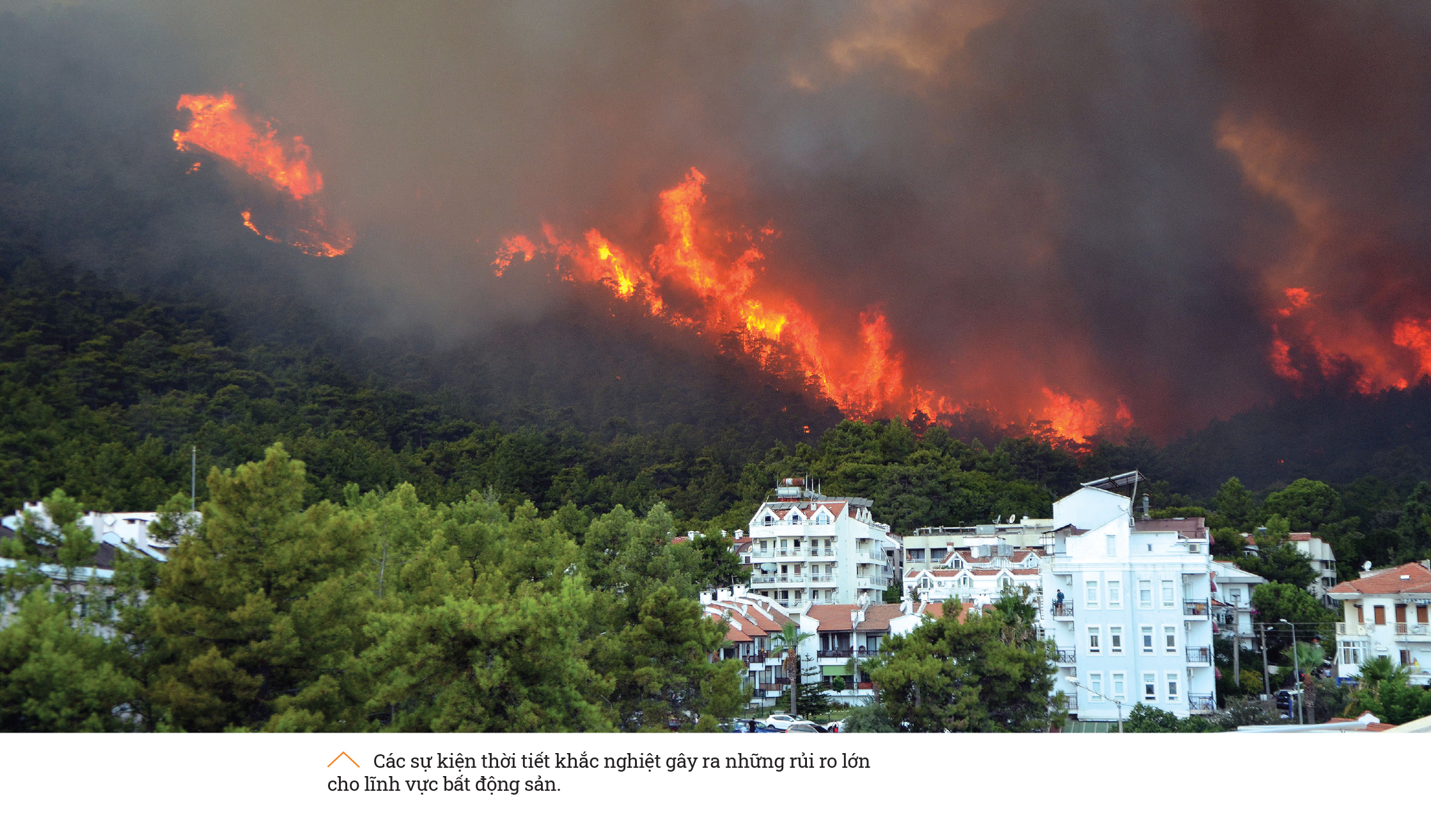 Tuy nhiên, những thiệt hại do thời tiết khắc nghiệt là điều các nhà đầu tư bất động sản cần phải tính tới. Theo báo cáo của HSBC, tác động do biến đổi khí hậu nói riêng dự kiến có thể ảnh hưởng đến 433.000 người/năm, gây thâm hụt 3,6 tỉ USD GDP vào năm 2030. Đặc biệt là TP.HCM nằm trong nhóm 10 thành phố chịu ảnh hưởng nặng nề nhất thế giới do biến đổi khí hậu. Dự kiến tới năm 2050, hàng triệu người dân TP.HCM sẽ phải hứng chịu rủi ro từ những hiện tượng liên quan tới khí hậu như ngập lụt, hạn hán và bão nhiệt đới.
