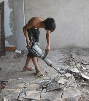 • Ảnh bên : Làm việc không có bảo hộ lao động là chuyện bình thường của họ.